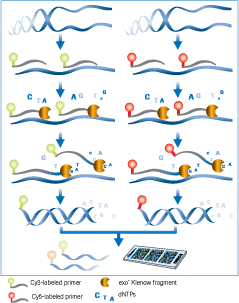 NimbleGen DNA Labeling Illustration Previous Next Published January 21, 2013 at 239 × 303 in Portfolio Dual Color DNA Labeling NimbleGen Dual Color DNA Labeling Process. 2009. vector art | scientific illustration